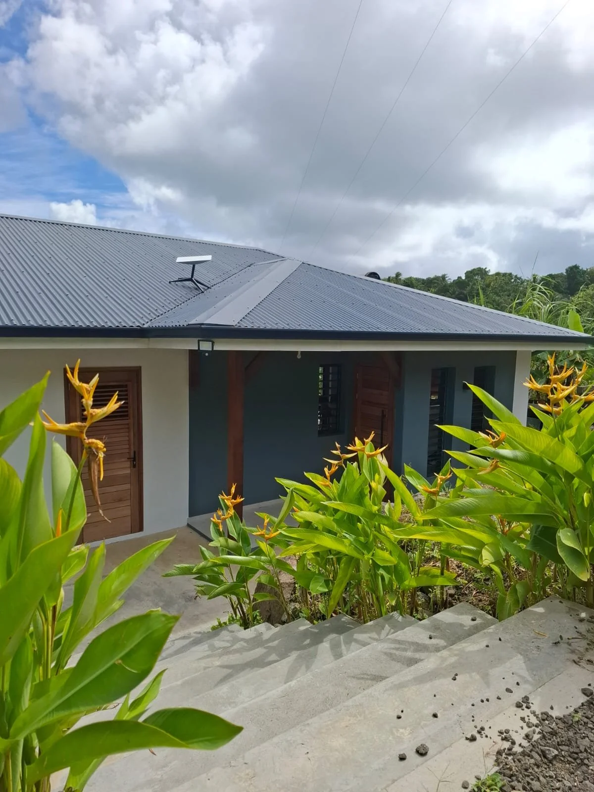 Les clients souhaitaient une maison capable de respirer, où la ventilation naturelle remplace la climatisation, et où chaque espace profite pleinement des alizés, de la lumière et des orientations favorables. L’implantation et la conception ont ainsi été guidées par le climat, afin de garantir un confort thermique durable et une qualité d’usage au quotidien.